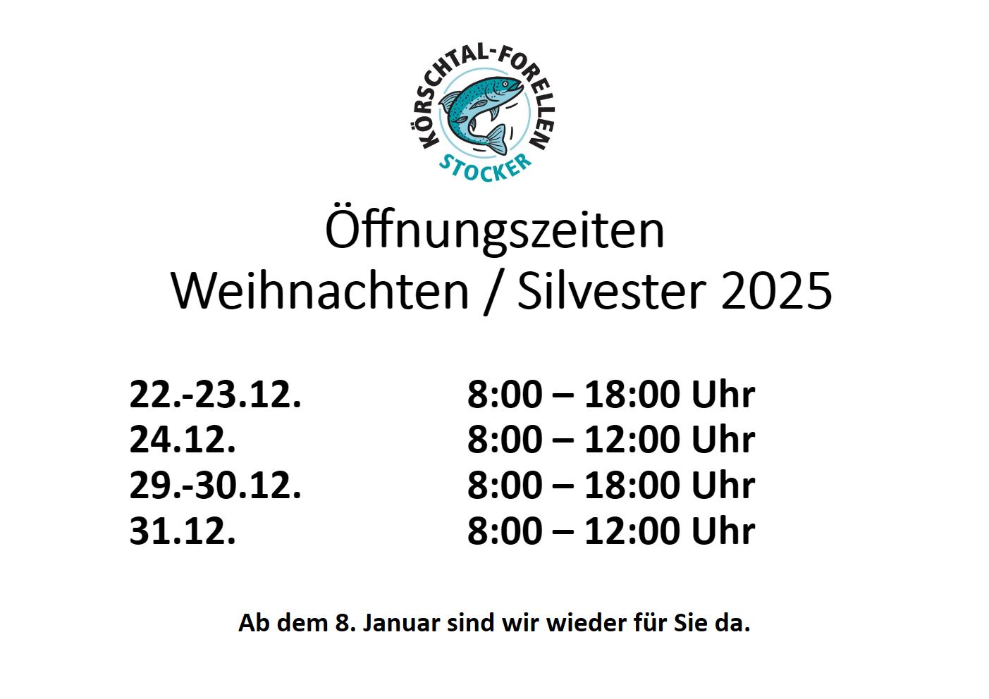 Öffnungszeiten zu Weihnachten und Silvester